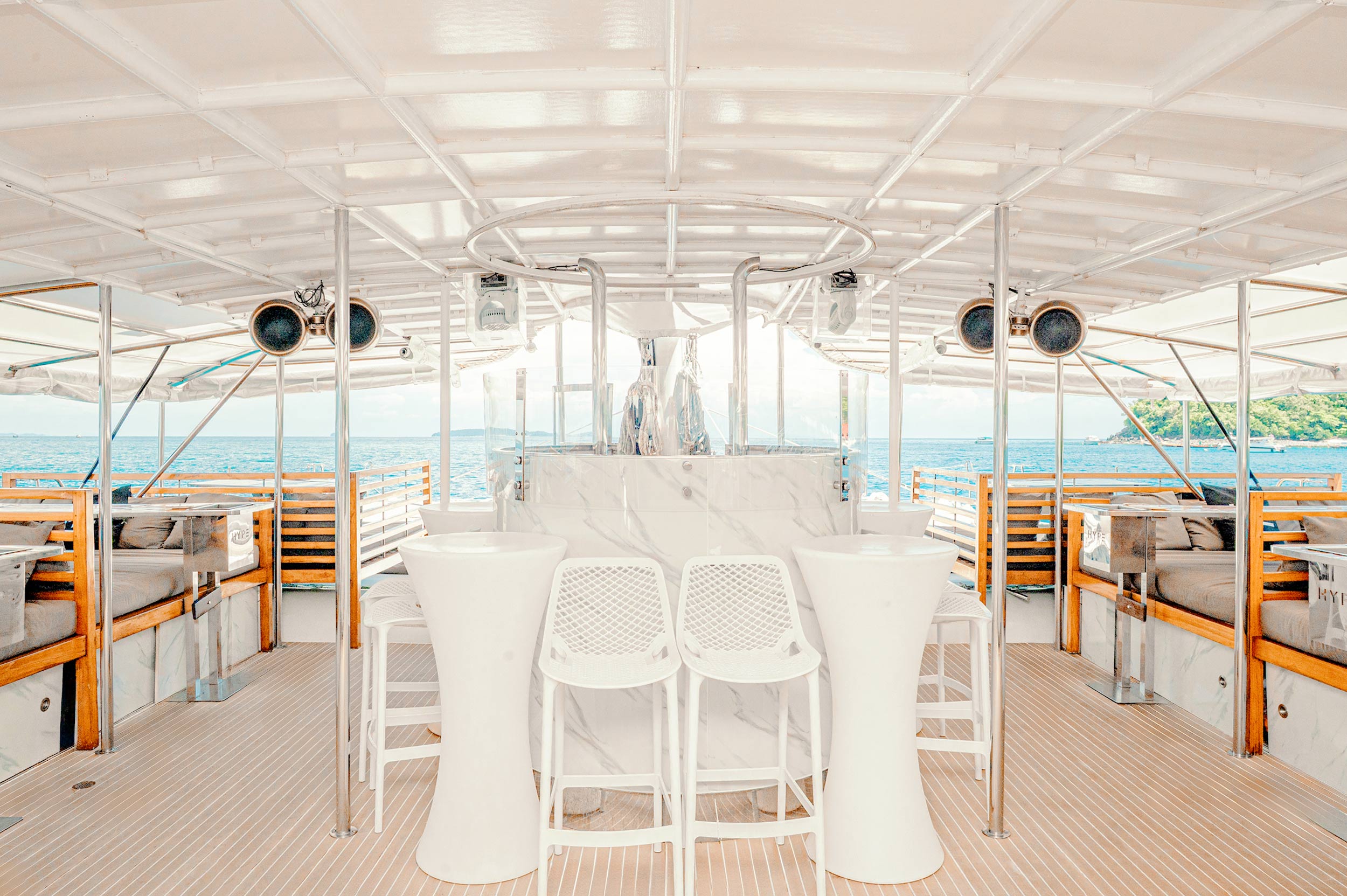 The boat is fitted and designed for comfort, and our DJs will entertain your day with a selection of laid-back lounge grooves that pick up throughout the day for an upbeat and magical sunset to end the day.